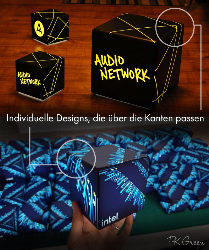 Unsere Markenartikel erfreuen sich großer Beliebtheit auf Messen und Ausstellungen. Unsere größeren Würfel und Bänke sind stabil genug, um darauf zu sitzen.