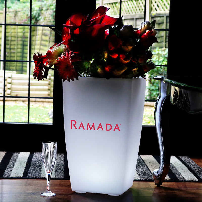 Darüber hinaus kann sie als Pflanzenkübel, moderne große Blumenvase, beleuchteter Übertopf, dekorative dimmbare Stehlampe, Stimmungslicht für Ambiente-Beleuchtung in Lounge, Garten, Terrasse, Balkon, Outdoor Event, Party, Hochzeit, Hotellobby, Restaurant, Bar, Café, Gaststätte verwendet werden.