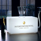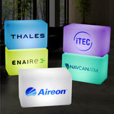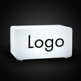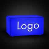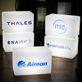 Lichtwerbung mit Logo, beleuchtete LED- Bank, Werbewürfel zum Sitzen, Rahmenloses Werbeschild für Ausstellung, Expo, Messe, Sitzwürfel bedrucken