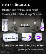 Zahlreiche unserer Kunden nutzen unsere Markenartikel für Messen, Kongresse und Ausstellungen. Einige unserer größeren Artikel sind stabil genug, um darauf zu sitzen.