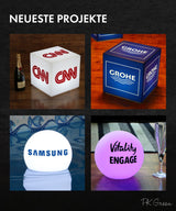 Sie können ihn als maßgeschneiderte Leuchtreklame verwenden, die das beleuchtete Logo Ihres Unternehmens präsentiert – eine Lichtwerbung, die sicher zum Gesprächsthema Ihrer nächsten Konferenz oder Ihres nächsten Events werden wird.