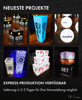 Mit einer Batterielebensdauer von über 8 Stunden halten unsere Markenleuchten während deiner gesamten Veranstaltung.