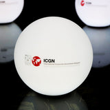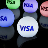 Beleuchteter Marken-Tischaufsteller als Werbekugel ohne Rahmen, LED Leuchtkasten-Werbung für Messe, Firmenveranstaltung Preisverleihung & Event.